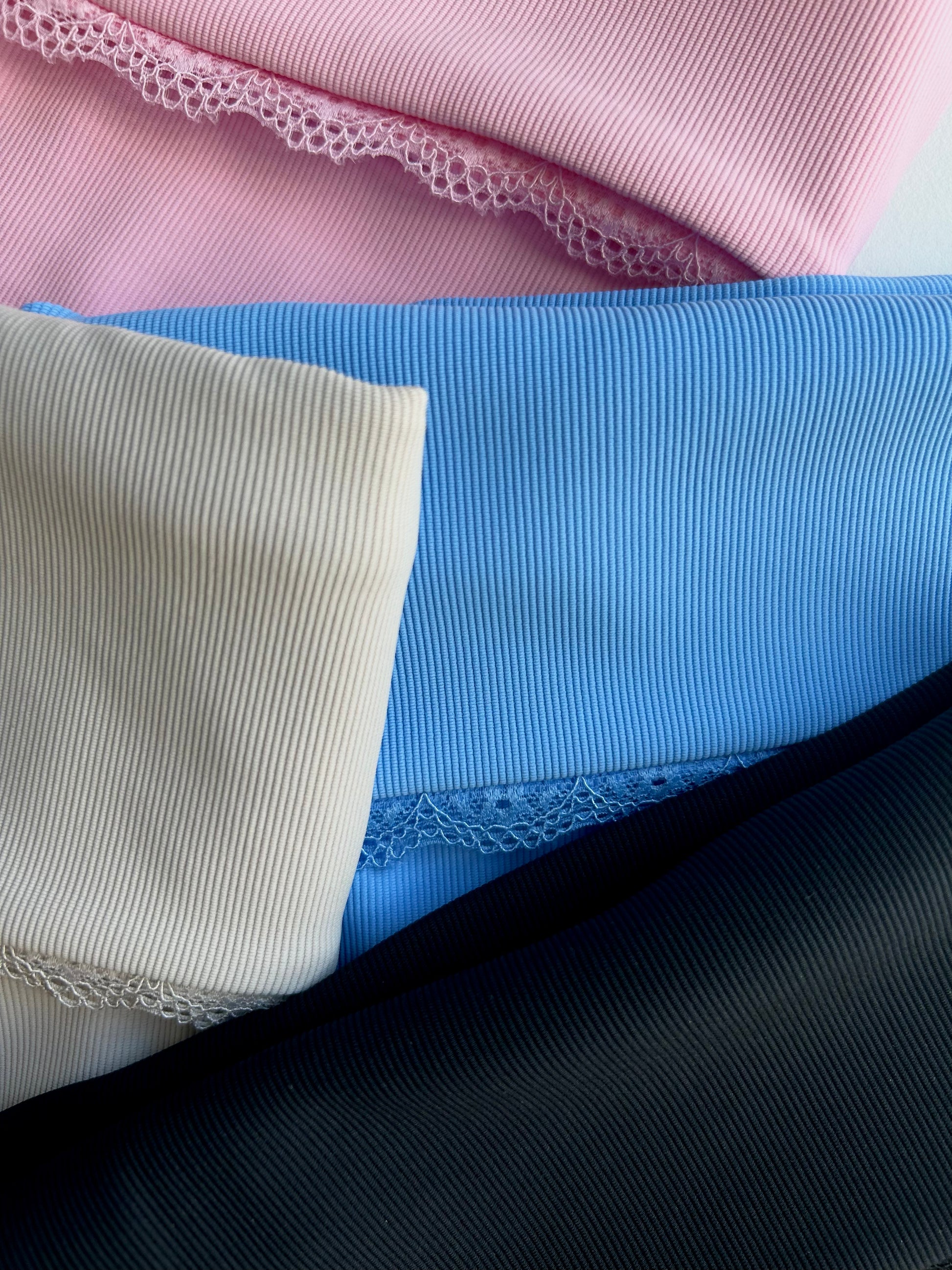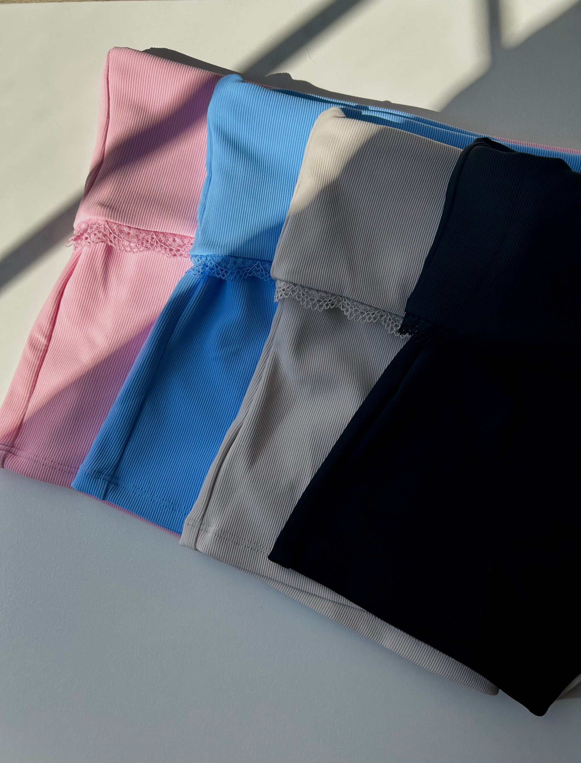 Fold over lace trim waistband. Pair with matching tank or cropped long sleeve. Sold as a Set.